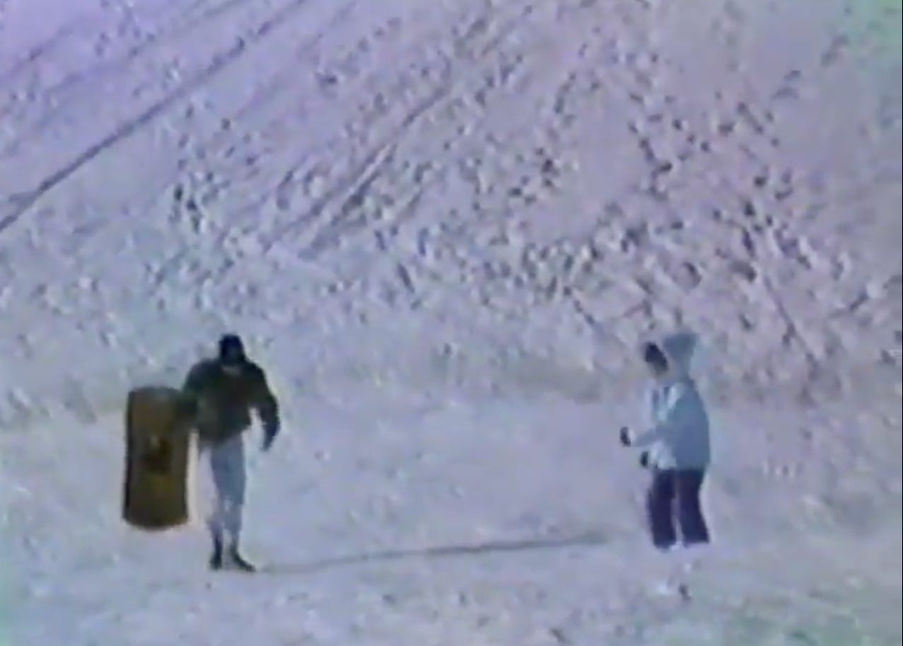 My love for home movies began with him. What started as our father dragging a barely portable VHS recorder everywhere—annoying at first—evolved into an art form as my brother and I grew together. Nine years younger, I delighted in rewatching our adventures. Elbowing each other, laughing at our frozen selves—sledding down hills, sliding over bumps in the snow using our pants as sleds. Often I was his model, toting an Ouija board or whatever felt “cool” in the moment.